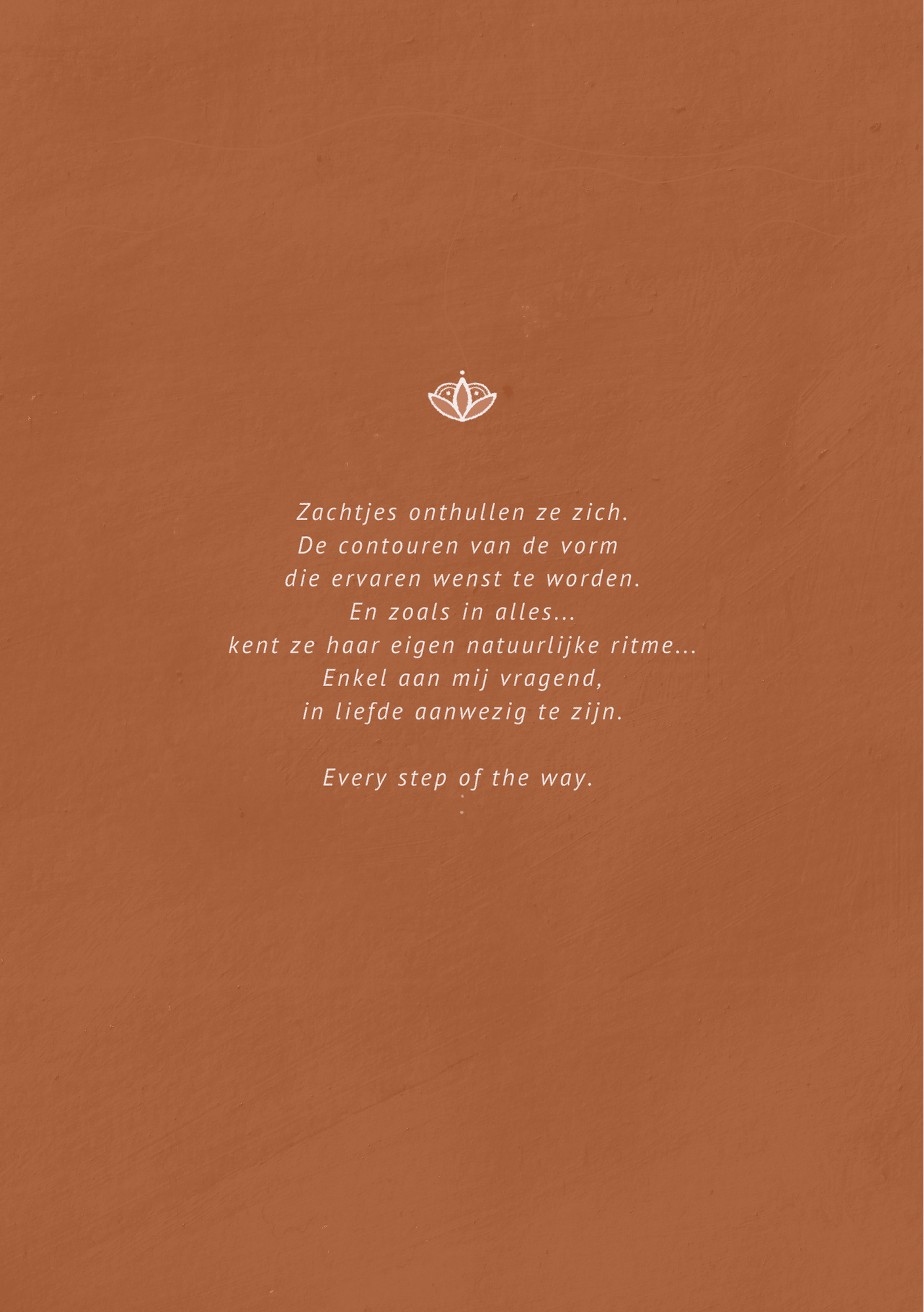 Een eerste bundeling van 29 prachtige verhalen, gedichten en gedachten over leven, de dood, verlangen naar moederschap, vrouw zijn en bovenal; mens zijn.